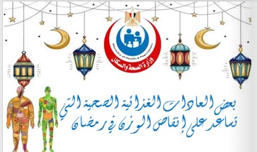 نشرت وزارة الصحة والسكان، روشتة لـ عادات صحية تؤدي إلي إنقاص الوزن خلال شهر رمضان المبارك.