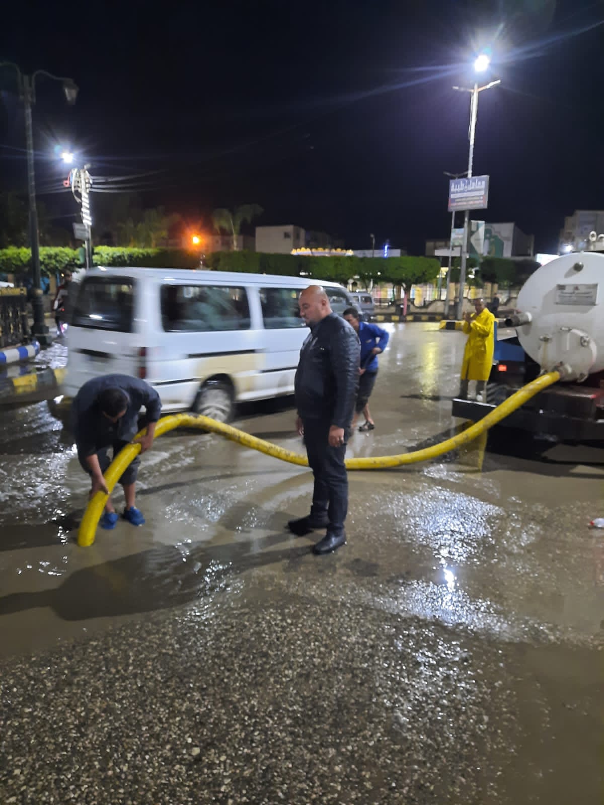فيما انتشرت سيارات سحب المياه من الشوارع وذلك لمنع تجمعات المياه وإعاقة حركة المرور.