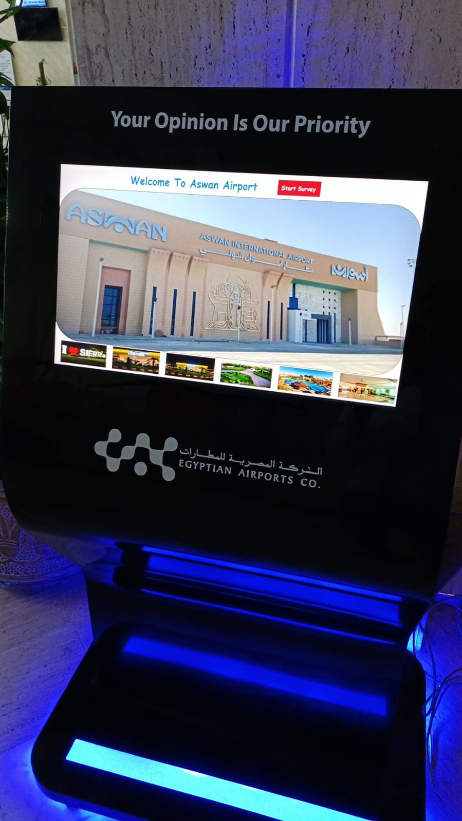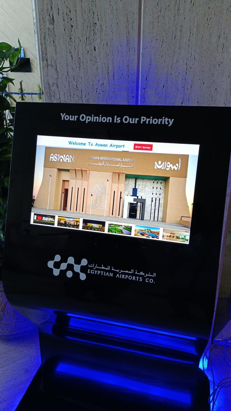 حرصت سلطات مطار أسوان الدولي، على تركيب أجهزة لاستطلاع آراء الركاب عن الخدمات المقدمة لهم بمطار أسوان بصالات السفر الدولي و الداخلي، بعد تركيبها بمطارات شرم الشيخ، الغردقة، برج العرب وسفنكس.