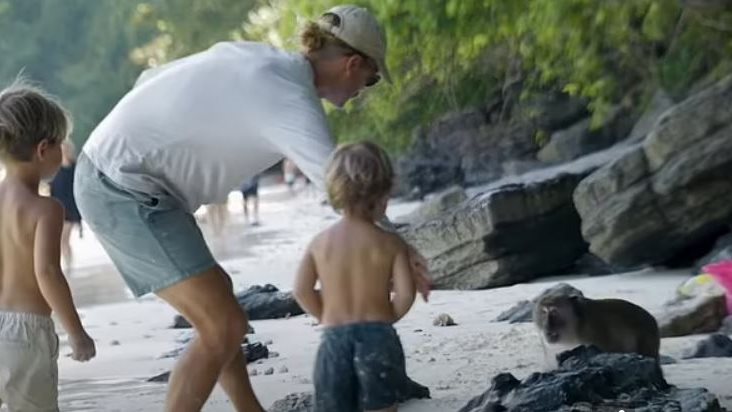 أظهر مقطع فيديو صادم محاولة خطف قرد لـ رضيع آسيوي كان يجلس بين مجموعة من الأطفال من مختلف الأعمار في ممر بين بيوت بلدهم الأجنبي.