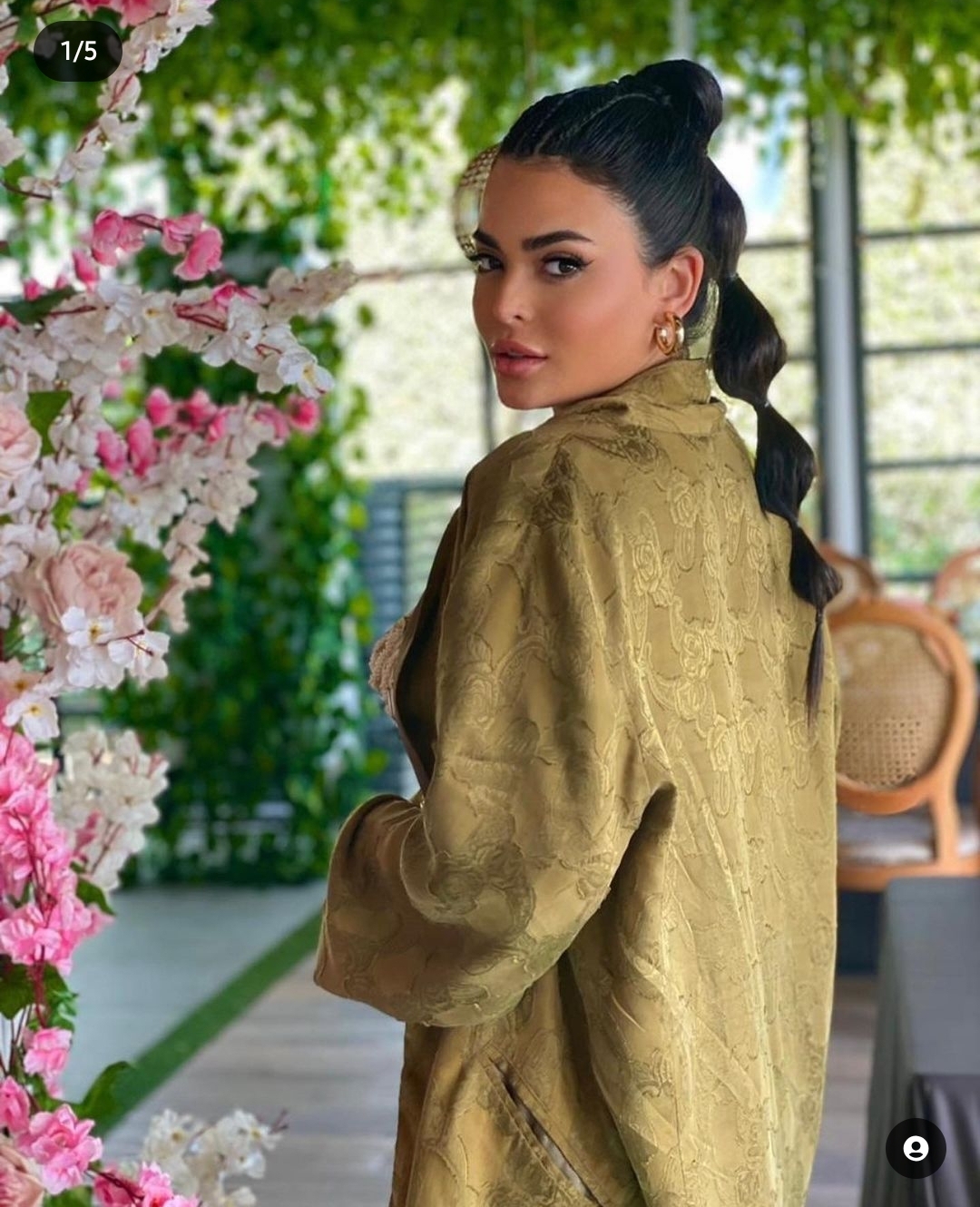 واختارت أسماء جلال بعض الإكسسورت الناعمة لتبرز إطلالتها، فقامت باختيار قرطين ناعميز باللون الذهبي، وهو ما تناسب مع تفاصيل إطلالتها.