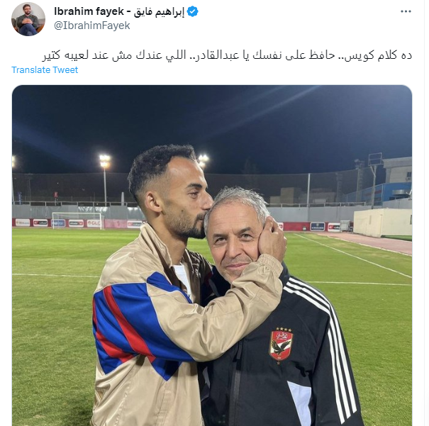 وكتب إبراهيم فايق: “ده كلام كويس.. حافظ على نفسك يا عبدالقادر.. اللي عندك مش عند لعيبه كتير”.