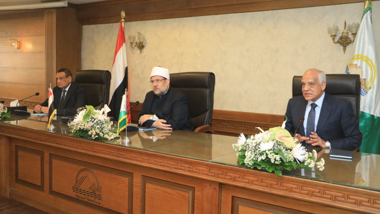 جاء ذلك خلال افتتاح وزير الأوقاف، مسجد الله نور السموات والأرض بقرية النخيل بمحافظة الجيزة، في إطار خطة وزارة الأوقاف لإعمار بيوت الله (عز وجل) مبنى ومعنى، حيث يتم افتتاح ( 43 ) مسجدًا اليوم الجمعة 7 / 4 / 2023م، منها ( 38 ) مسجدًا جديدًا أو إحلالًا وتجديدًا، و ( 5 ) مساجد صيانة وتطويرًا ؛ ليصل إجمالي ما تم افتتاحه من 1 / 7 / 2022 م حتى تاريخه ( 1054 ) مسجدًا، منها ( 858 ) مسجدًا جديدًا أو إحلالًا وتجديدًا، و ( 196 ) مسجدًا صيانة وتطويرًا، كما هنأ أهالي محافظة الجيزة بالعيد القومي للمحافظة.