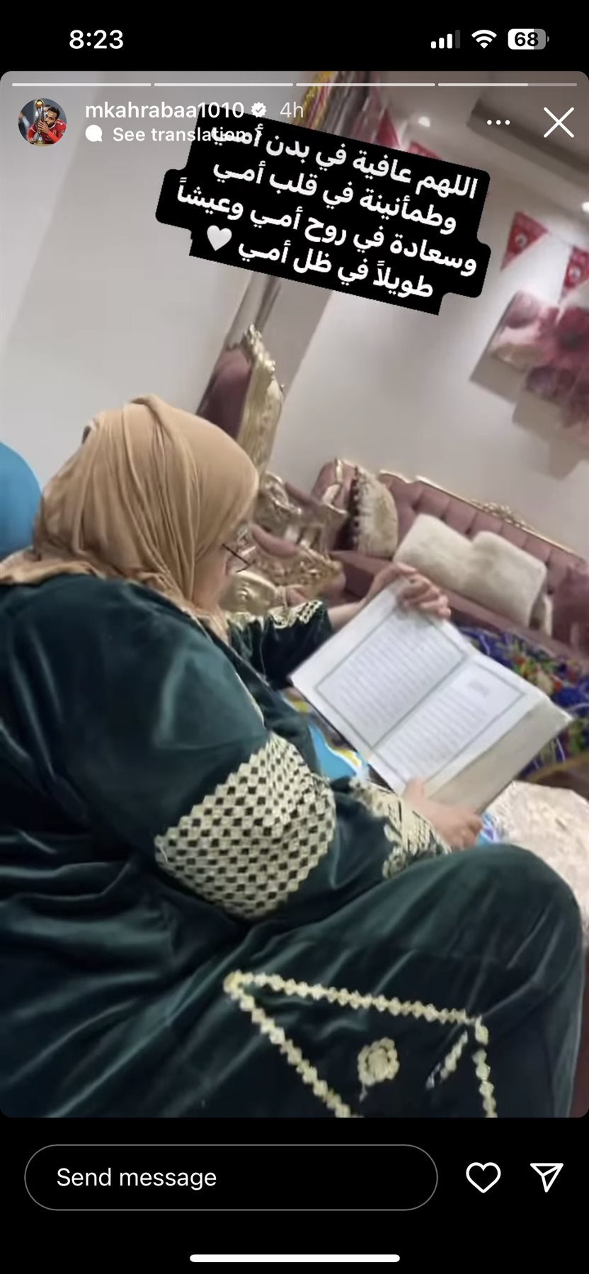 وكتب كهربا: “اللهم عافية في بدن أمي وطمأنينة في قلب أمي وسعادة في روح أمي وعيشاً طويلاً في ظل أمي”.