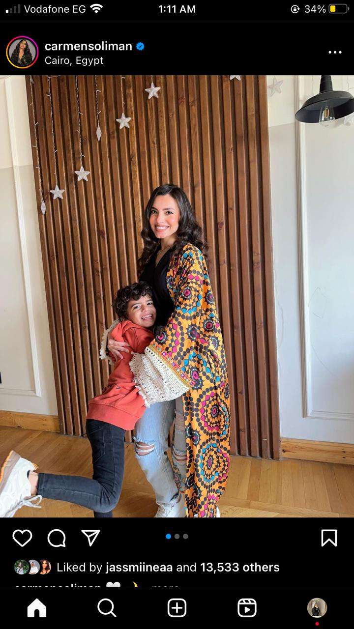 وظهرت كارمن سيلمان بإطلالة رمضانية جذابه ناعمه برفقة ابنها، مما حازت علي اعجاب متابعيها.