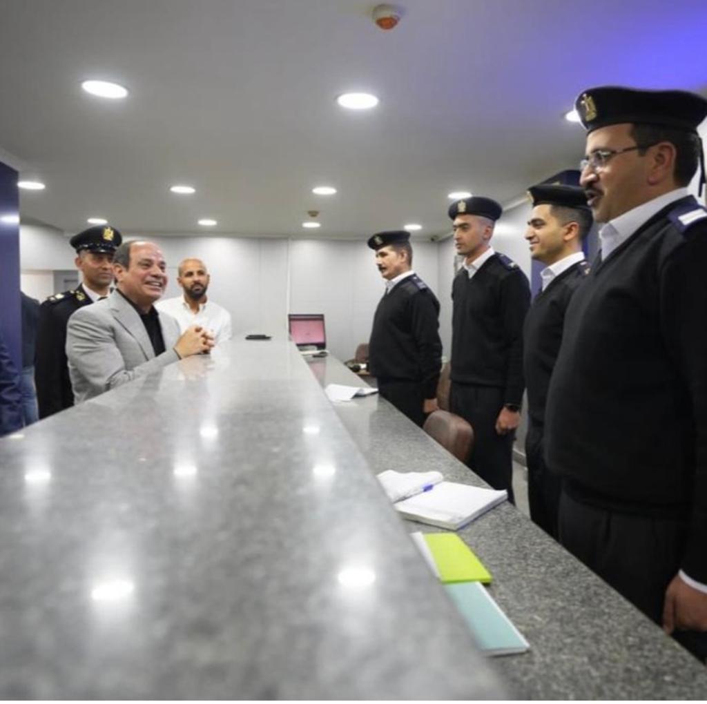 وتفقد الرئيس السيسي قسم شرطة مدينة قسم شرطة مدينة نصر أو ل بالزيارة وأدار نقاشا مع الضباط والأفراد والمواطنين داخل القسم.