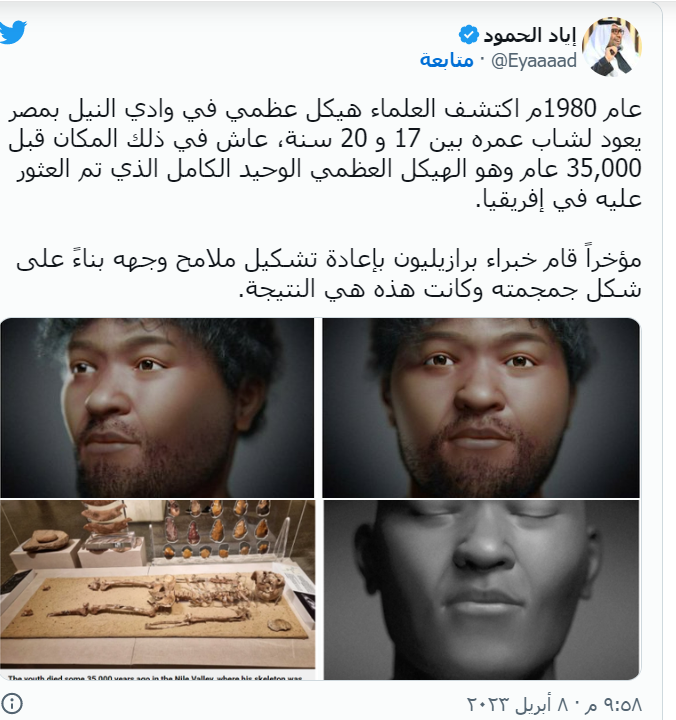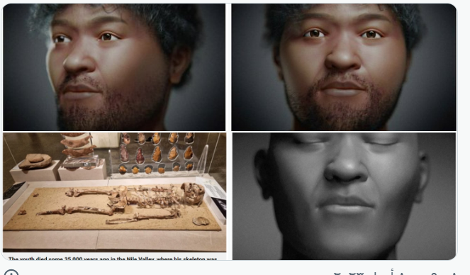 على الجانب الآخر عاش صاحب هذا الوجه قبل ما يقرب من 35 ألف عام وتم اكتشافه عام 1980 بوادي النيل في مصر.