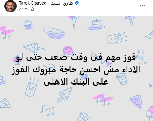 وكتب طارق سيد: “فوز مهم فى وقت صعب حتى لو الاداء مش احسن حاجة مبروك الفوز على البنك الاهلى”.