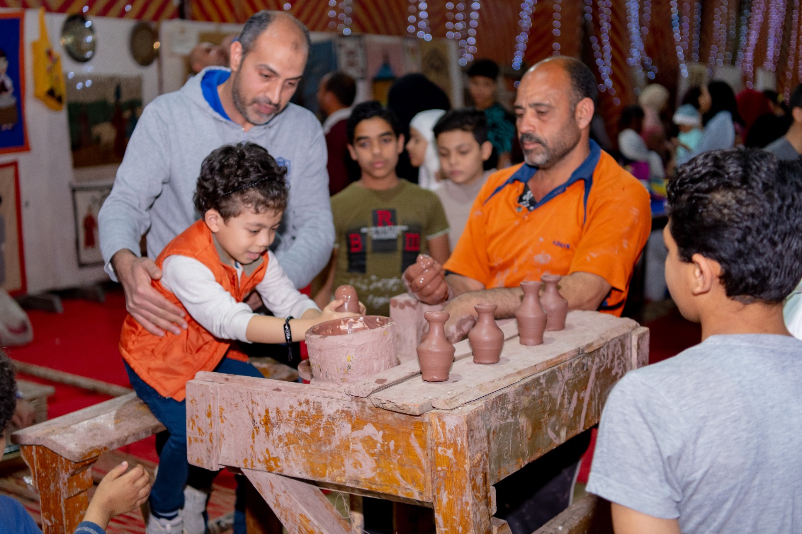 كما شهد المعرض اليوم تقديم مجموعة من الورش المتنوعة للأطفال، تمثلت في ورش حكي، ورسم، وتلوين، وتلوين فخار وغيرها.
