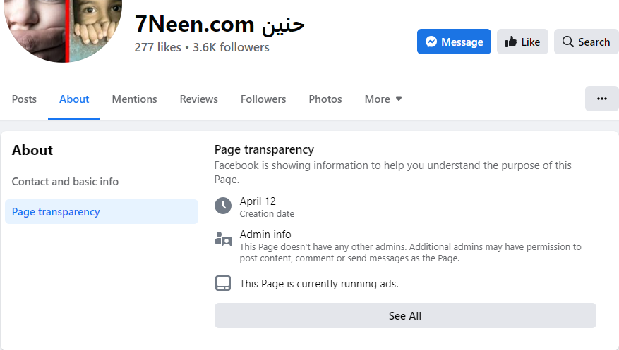 وعند البحث عن تاريخ الصفحة، اتضح أنه تم تدشينها حديثا في 12 أبريل أي قبل يومين فقط، وتتبع سياسة استخدام التمويل والإعلانات، وهو ما يتنافى مع الهدف من المبادرات غير الهادفة للربح.