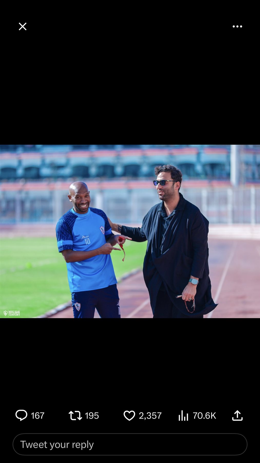 ونشر شيكابالا صورة له برفقة أحمد حسام ميدو لاعب الزمالك السابق، وعلق: "العالمي الجرئ".