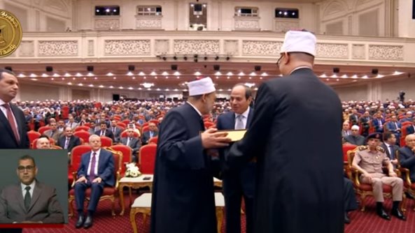 ومن جانبه، استهل الدكتور أحمد الطيب، شيخ الأزهر كلمته بتوجيه التهنئة لـ الرئيس السيسي، قائلًا: "يسعدني في بداية كلمتي أن أتقدم لكم سيادة الرئيس وشعب مصر الكريم والأمتين العربية والإسلامية بخالص التهاني وأطيب الأماني بأن يعيد الله علينا وعليكم هذا الشهر الكريم باليمن والخير البركات".