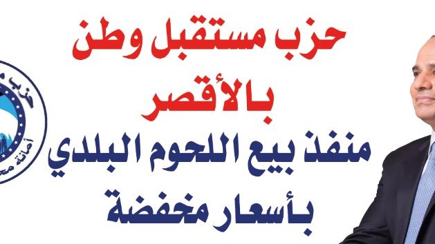تواصل امانة حزب مستقبل وطن بمحافظة الأقصر تنظيم معارض ومنافذ بيع السلع الغذائية واللحوم باسعار مخفضة ضمن المبادرة التي اطلقتها امانة حزب مستقبل وطن بمحافظة الاقصر لمواجهة الغلاء بتعليمات النائب الاستاذ الدكتور محمد العماري امين الحزب بالمحافظة،وكيل لجنة الصحة بمجلس النواب .