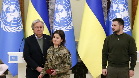 قال ستيفان دوجاريك، المتحدث باسم الأمين العام للأمم المتحدة، أنطونيو جوتيريش، إن الأمين العام تفاجأ أثناء زيارته لأوكرانيا في مارس، بأن كييف قررت إقامة حفل توزيع جوائز للجنود دون موافقته.