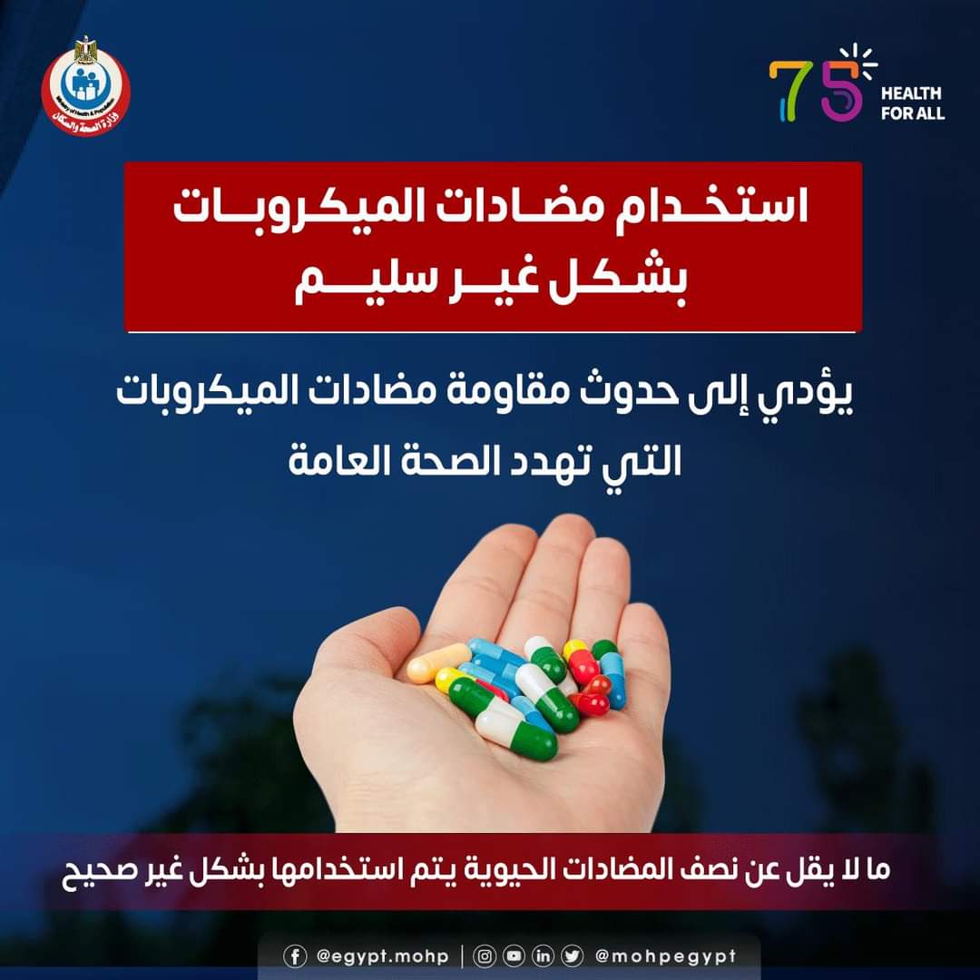 قالت وزارة الصحة والسكان إن استخدام مضادات الميكروبات بشكل غير سليم يؤدي إلى حدوث مقاومة للميكروبات مما يهدد الصحة العامة.