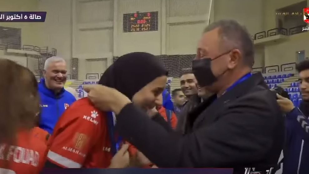 وتفاجئ اللاعبات بوصول محمود الخطيب الي الصالة المغطاة للإحتفال مع اللاعبات وتسليمهم اللقب لكنهم قلدهن بالميداليات الذهبية وهتفوا له.