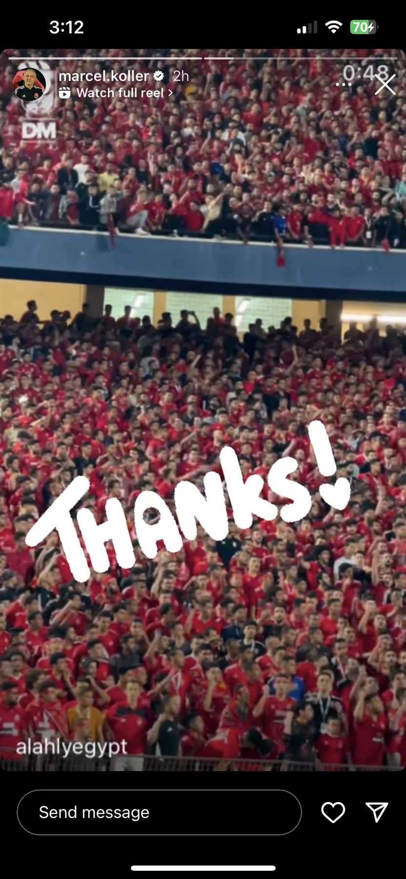 وشارك فيديو لجمهور الأهلي، وعلق: “شكراً لكم”.