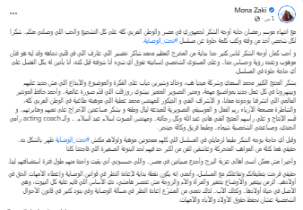 نشرت الفنانة منى زكى تعليقا عبر صفحتها على موقع التواصل الاجتماعى فيسبوك توجه من خلاله رسالة الى فريق مسلسل “تحت الوصاية” الذى قامت ببطولته فى رمضان الماضى.
