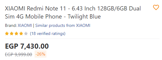 ويتوفر هاتف شاومي Xiaomi Redmi Note 11 في السوق المصري في العيد بسعر حوالي 7 آلاف و 430 جنيها وذلك لنسخة 128/6 جيجا بايت، علما بأن السعر يختلف حسب النسخة وأيضا حسب المتجر.