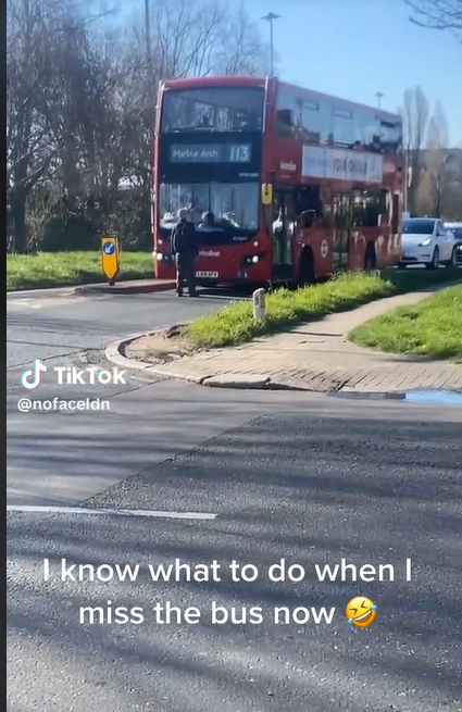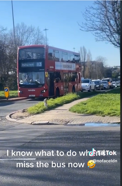 التقط أحد رواد السوشيال ميديا فيديو قام بنشره على برنامج التيك توك لرجل تسبب في إيقاف حركة المرور وحدوث ازدحام مروري ضخم، وذلك لأنه لم يستطع ركوب حافلة من طابقين في لندن، وحدث ذلك على طريق 113 ماربل آرك.
