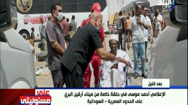 قدم الإعلامي أحمد موسى حلقة اليوم من برنامج " على مسئوليتي "، المذاع على قناة " صدى البلد" من ميناء أرقين البري على الحدود المصرية السودانية .