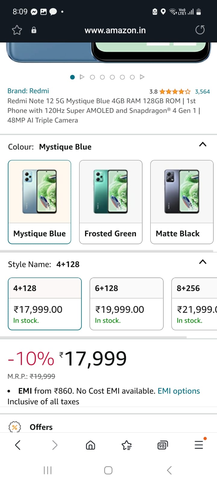 ولحسن الحظ يقدم موقع أمازون الهند خصم رائع على هاتف شاومي Redmi Note 12 ليصل سعره النهائي بعد التخفيض إلى 17999 روبية هندية أي ما يعادل 6600 جنيه مصري.