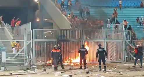 وتأخر انطلاق الشوط الثاني من مباراة الترجي وشبيبة القبائل قرابة 40 دقيقة، بسبب إلقاء جماهير الفريق التونسية شماريخ على أرضية الملعب وفي المدرجات لتشتعل النار بالمنعرج الجنوبي وفقا لإذاعة “موزاييك” التونسية، ورد الأمن بإطلاق غاز مسيل للدموع.