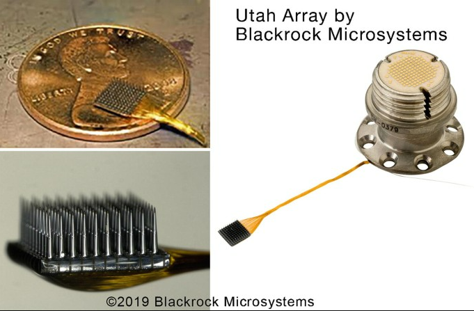 تستخدم تقنية Blackrock شريحة صغيرة الحجم جدا شديدة الدقة وفائقة في هندستها مكونة من أذرع صغيرة عددها 96 مصفوفة وتشبه فرشاة الأسنان أو أقرب ما يكون لشكل إبرة يمكنها قراءة وتحفيز الإشارات الكهربائية، يمكن وضعها في أي مكان على سطح الدماغ. كما يمكن تثبيت أجهزة متعددة على دماغ الشخص الواحد.