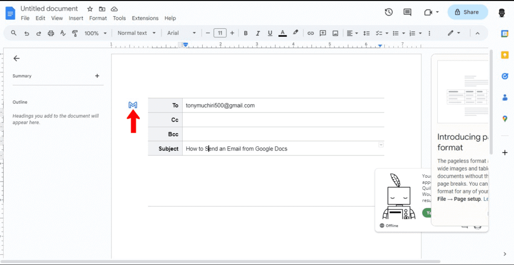 إذا كنت بحاجة إلى إرسال بريد إلكتروني على وجه السرعة، جوجل اختصرت عليك الطريق، ويمكنك فعل ذلك وأنت ما زلت في محرر المستندات وفي عدة خطوات بسيطة وسهلة، كالتالي:
