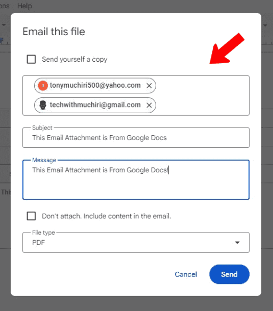 كيفية إرسال ملف Google docs كرسالة بريد إلكتروني