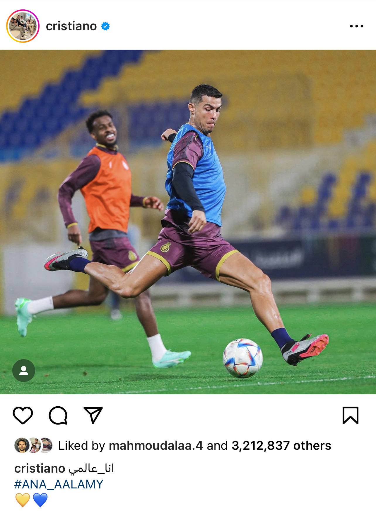 ووجه رونالدو رسالة إلي المتابعين باللغة العربية، كاتبًا: “أنا عالمي”.