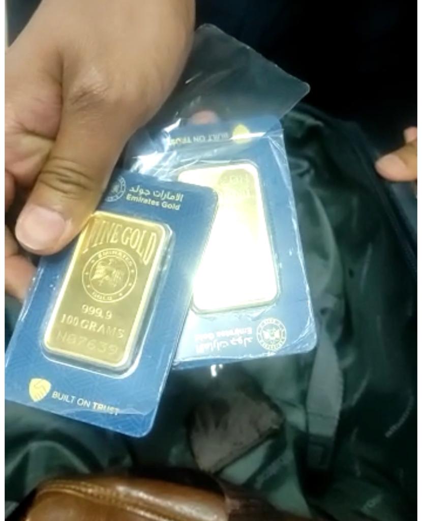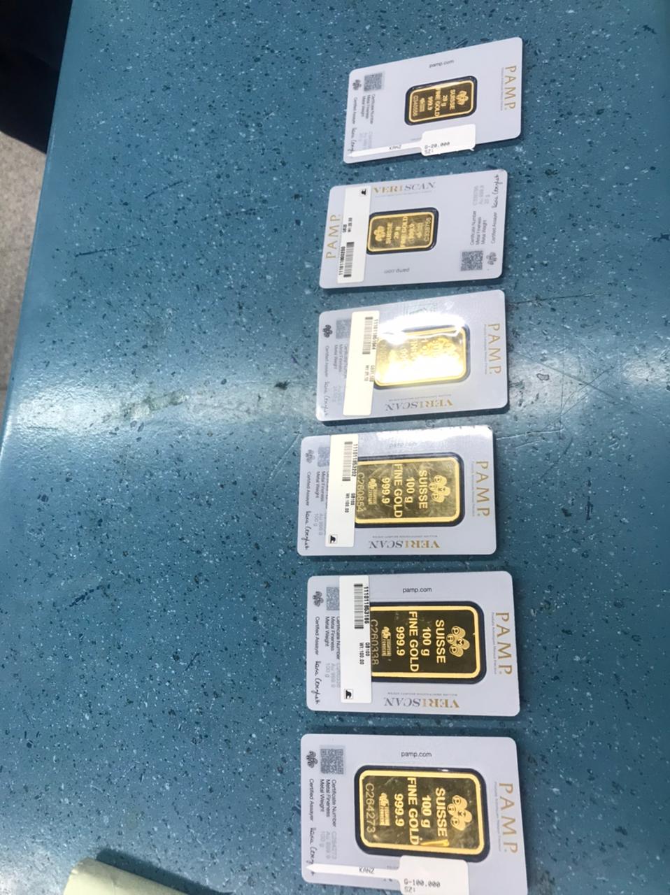 قام محمود سليمان مدير الحركة المشرف على الصالة بتكليف حسن شرف مأمور الجمرك بتفتيش حقائب الراكب يدويا مما أسفر عن وجود ٩ سبائك أخفاهم الراكب داخل عبوات "بارفان" قامت لجنة مكونه من سيد فؤاد وأحمد أمين وعلاء سمير و ايمن الجوهري تحريز وتصنيف السبائك التسعة بعد وزنهم، حيث بلغ وزن اربعة منهم ١٠٠ جرام لكل واحدة و خمس سبائك بوزن ٢٠ جرام لكل واحدة بإجمالي ٥٠٠ جرام.