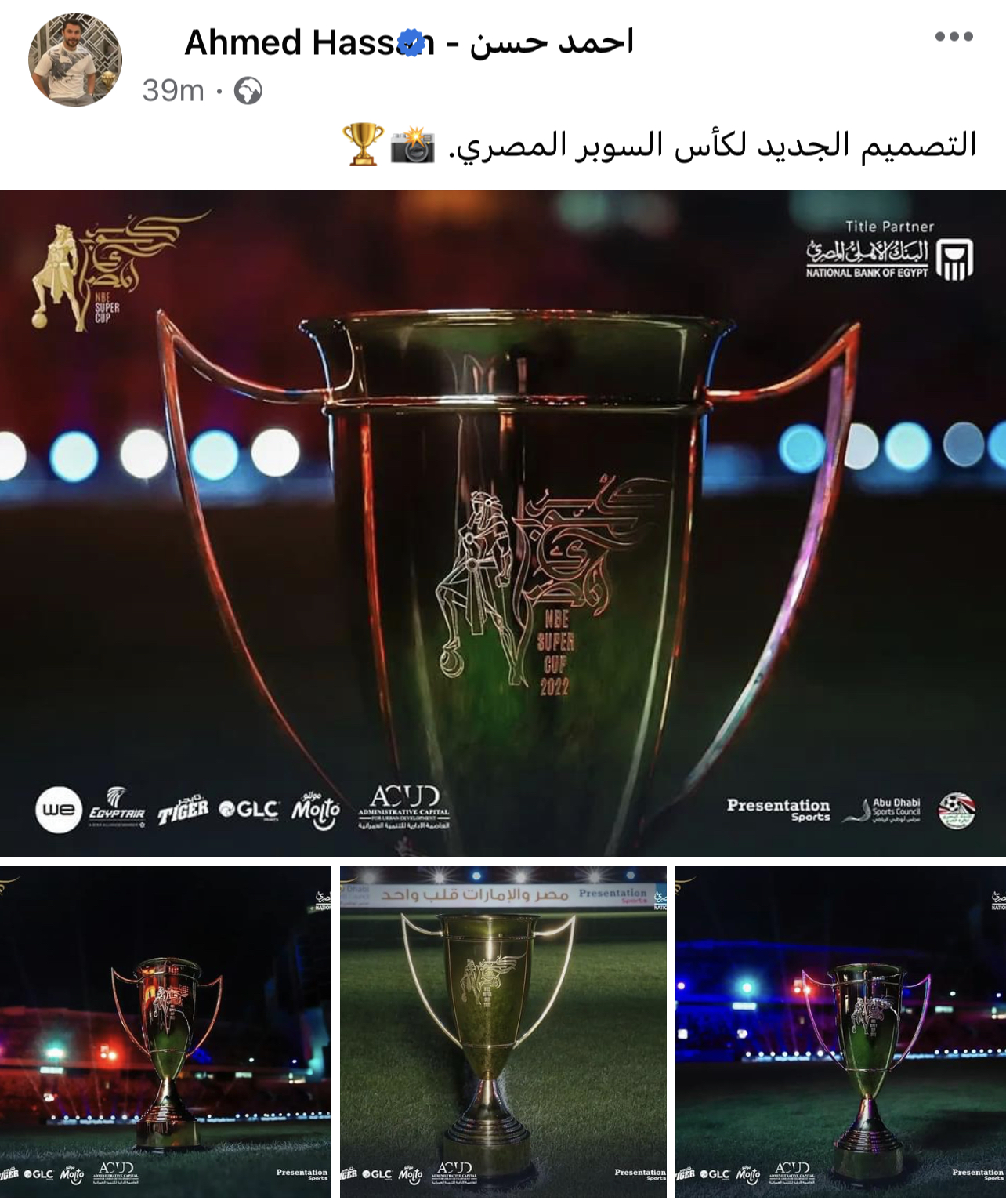 وكتب أحمد حسن: “التصميم الجديد لكأس السوبر المصري”.