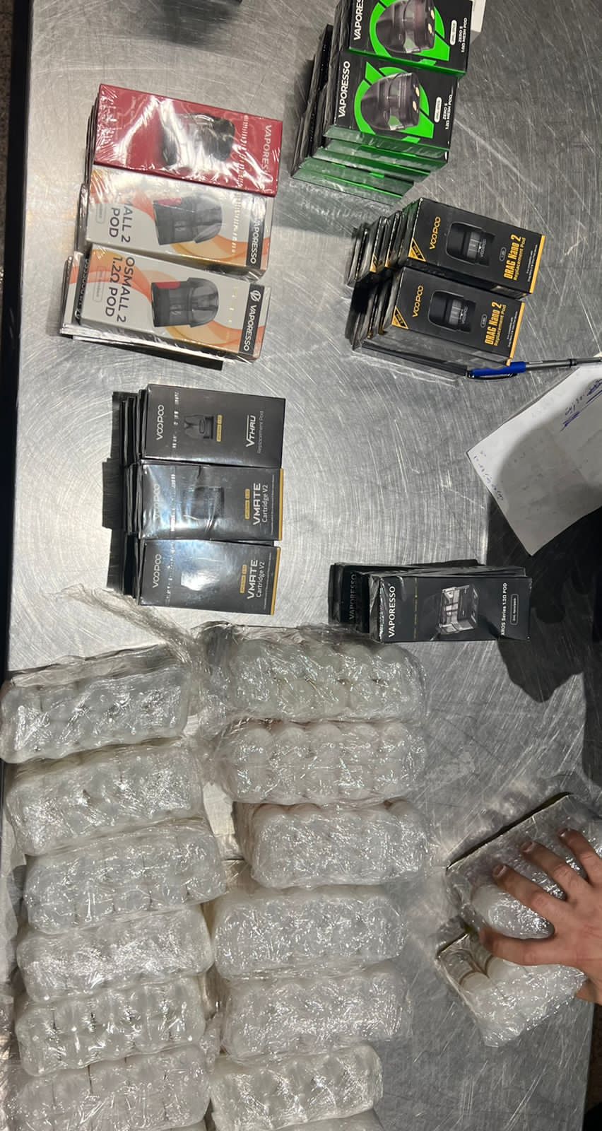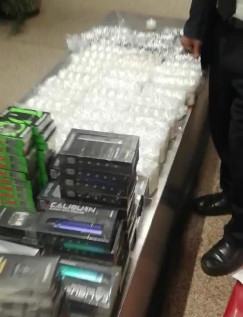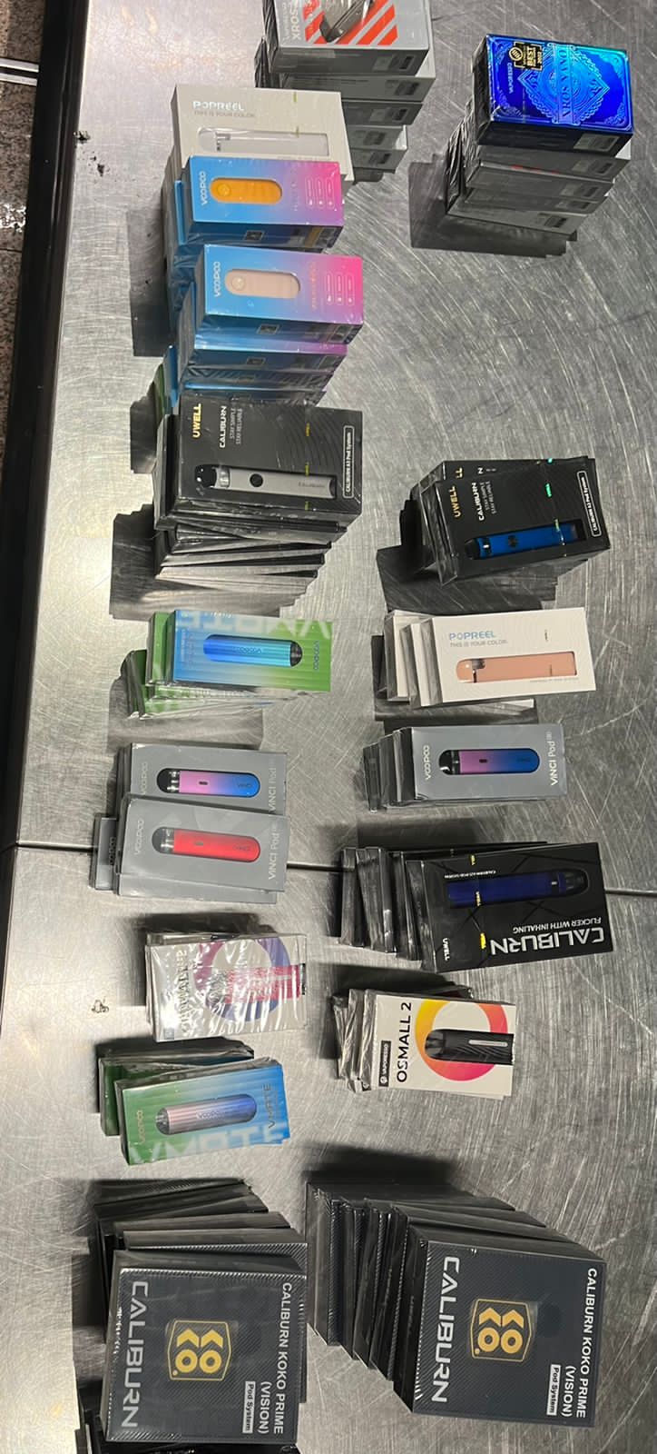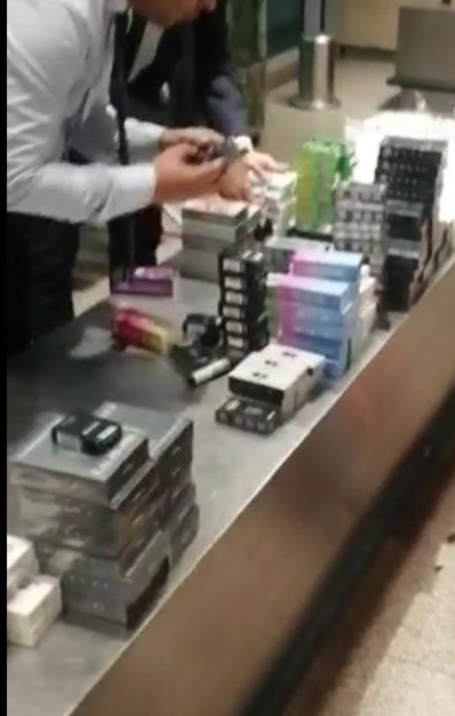 وقام إبراهيم عامر مدير الحركة المشرف على صالة الوصول بمبني الركاب رقم ٣ بتكليف محمد فتح الله أبو العيون مأمور الجمرك بتفتيش حقائب الراكب يدويا مما اسفر عن وجود كمية كبيرة من زيوت ومستلزمات الشيش الإلكترونية، قام الدكتور صابر عبد الحميد مدير الجمرك بتكليف لجنة مكونه من محمد نبيل و عبد الله حمدي و محمد قنديل و وليد حجاج مآمير الجمرك وذلك لجرد وعد وتصنيف وتحريز المضبوطات التي بلغ عددها ٦٣٠ عبوة من زيوت ومستلزمات الشيش الإلكترونية.