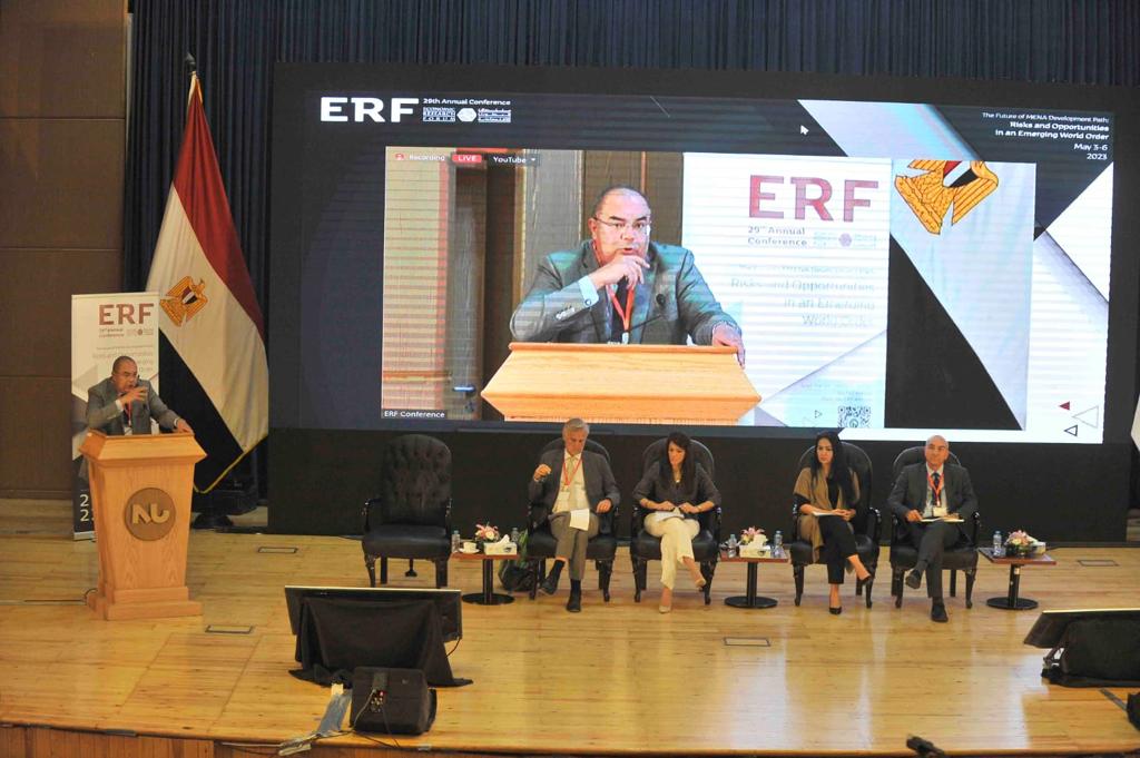 جاء ذلك خلال إدارته لجلسة بعنوان "منظور واسع للمخاطر والفرص" ضمن فعاليات النسخة التاسعة والعشرين من منتدى البحوث الاقتصادية الذي استضافته جامعة النيل تحت عنوان "مستقبل مسار التنمية في منطقة الشرق الأوسط وشمال أفريقيا: المخاطر والفرص المتاحة في نظام عالمي ناشئ"، وذلك بمشاركة دكتورة رانيا المشاط، وزيرة التعاون الدولي، وجيفري ساكس، الخبير الاقتصادي الأمريكي، وكلاوس شميدت هيبل، الأستاذ بجامعة التنمية بتشيلي، وصبا المبسلط، المديرة الإقليمية لمؤسسة فورد لمنطقة الشرق الأوسط وشمال أفريقيا، وحسن حكيميان، أستاذ الاقتصاد بجامعة حمد بن خليفة.