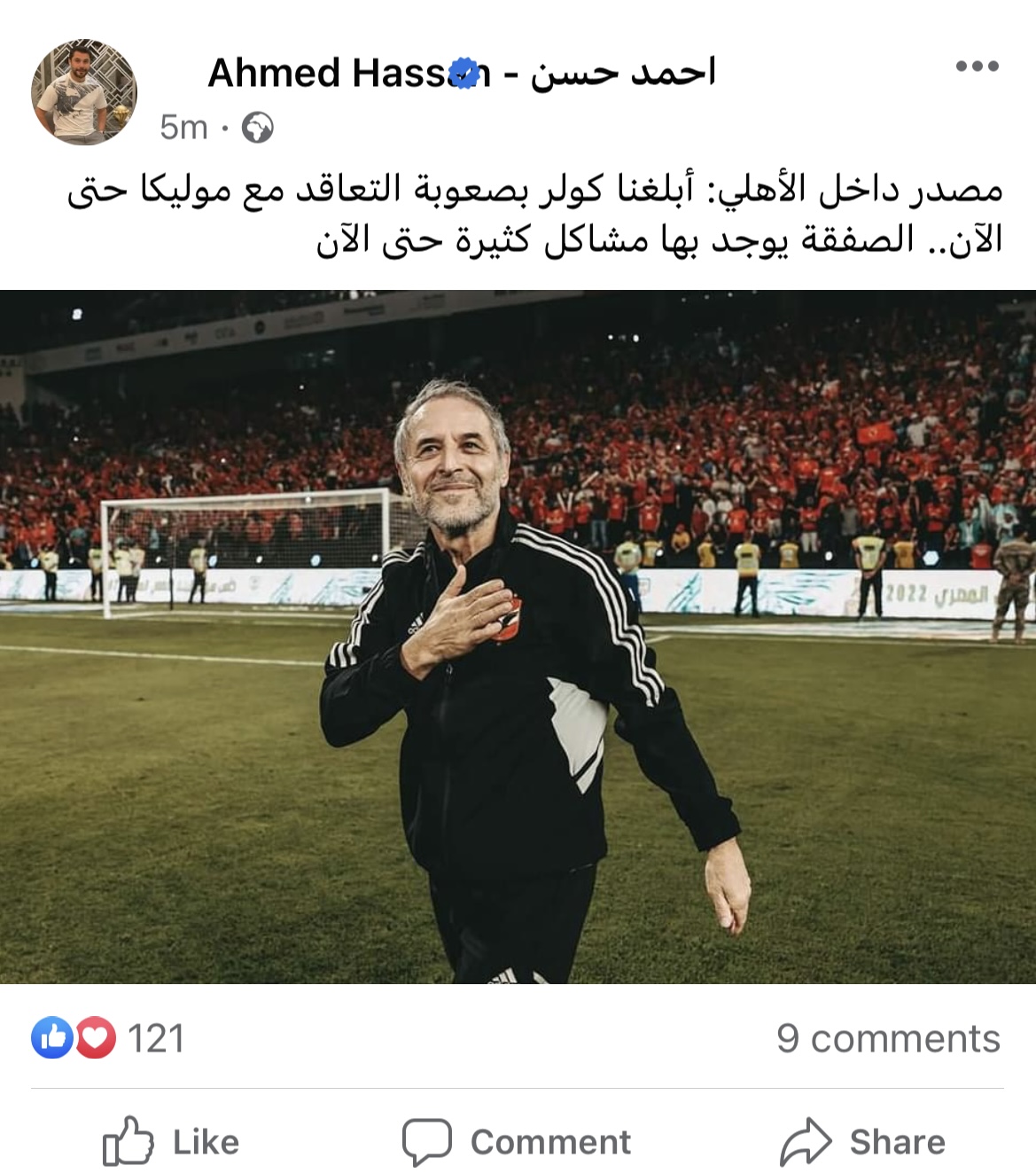 وكتب: “مصدر داخل الأهلي أبلغ كولر بصعوبة التعاقد مع موليكا حتى الآن.. الصفقة يوجد بها مشاكل كثيرة حتى الآن”.