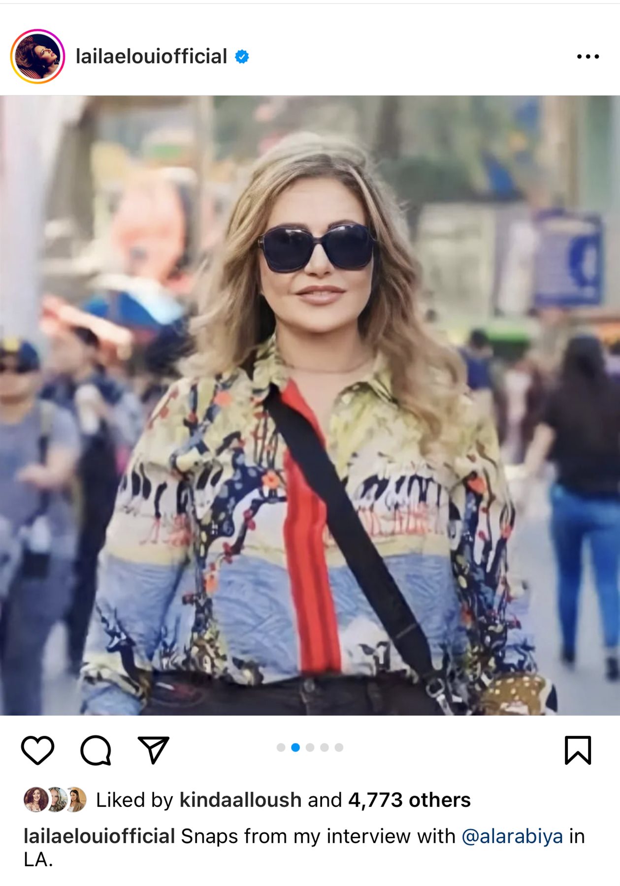 وظهرت ليلى علوي، مرتدية بلوزة ذات ألوان متعددة، مع نظارة شمس باللون الأسود، تاركة خصلات شعرها في تسريحة جذابة.