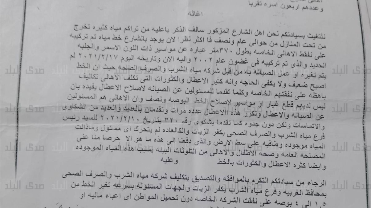 أعلنت شركة مياه الشرب والصرف الصحي بالجيزة، أنه نظراً لأعمال مشروع المونوريل، وطلب الهيئة القومية للأنفاق، بتغيير مسار خط المياه قطر ٤٠٠ مم، والمتعارض مع قواعد المونوريل، وكذلك طلب وزارة الداخلية بمد مواسير خط مياه الشرب بقطر ٢٠٠ مم لمبنى مكافحة الإرهاب بطريق مصر إسكندرية الصحراوي، الأمر الذي يتطلب قطع المياه لإنهاء تلك الأعمال.