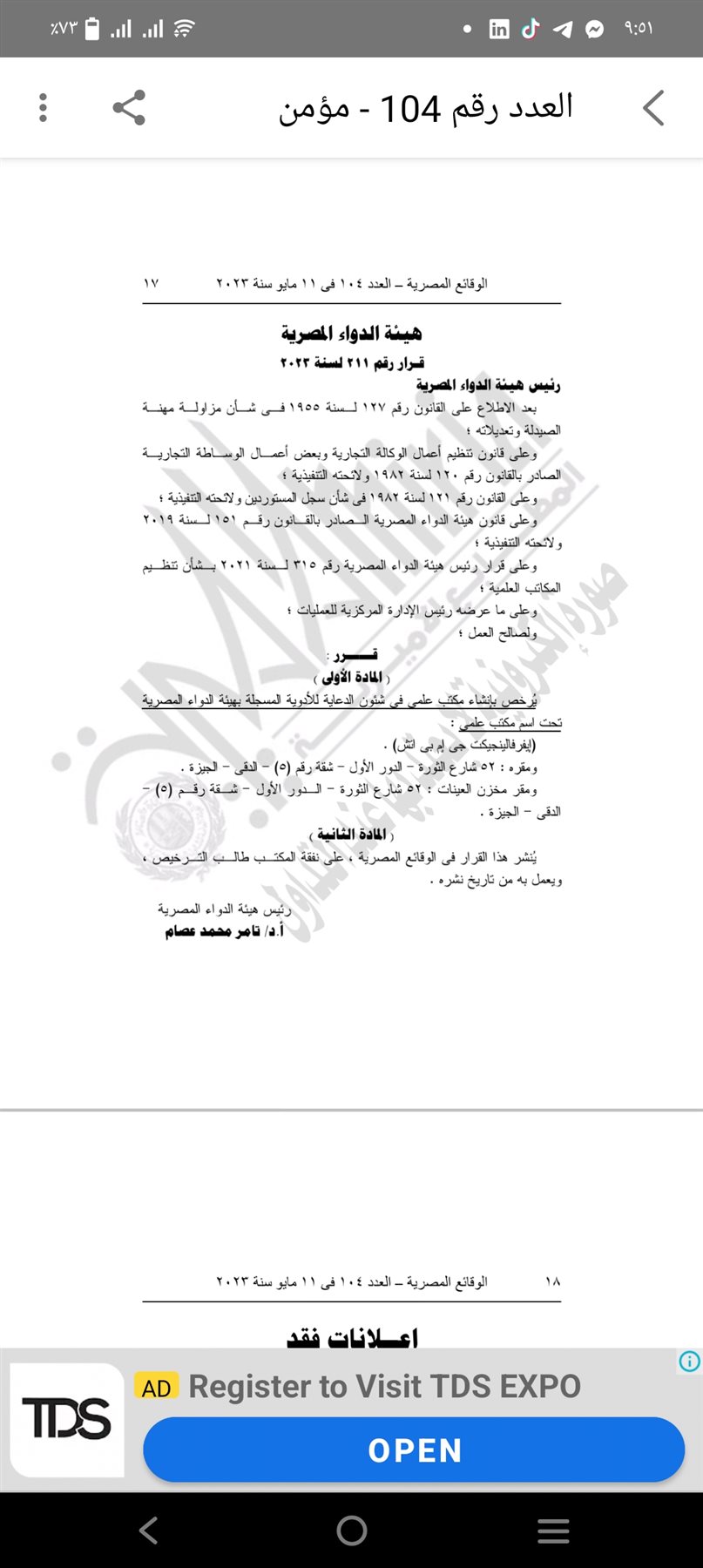 نشرت الجريدة الرسمية قرار هيئة الدواء المصرية الذي حمل رقم ٢١١ لعام ٢٠٢٣ والذي جاء نصه كالتالي
