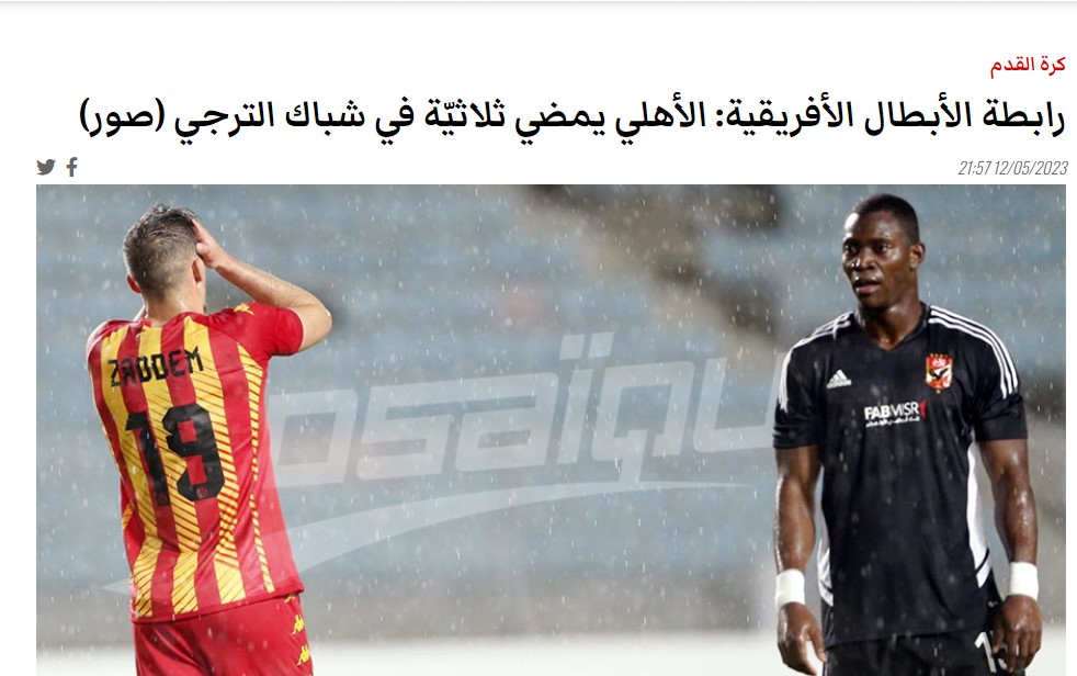 ماذا قالت الصحف التونسية عن خسارة الترجي أمام الأهلي؟