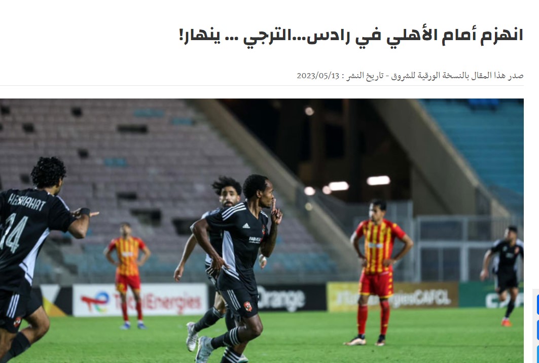 صحيفة “الشروق”: انهزم أمام الأهلي في رادس.. الترجي ينهار!
