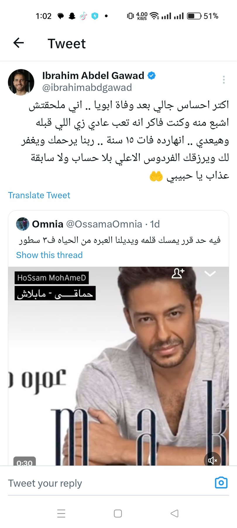 شارك الإعلامي إبراهيم عبد الجواد كلمات مؤثرة في ذكرة وفاة والدة عبر صفحتة الرسمية على موقع التواصل الاجتماعي تويتر.