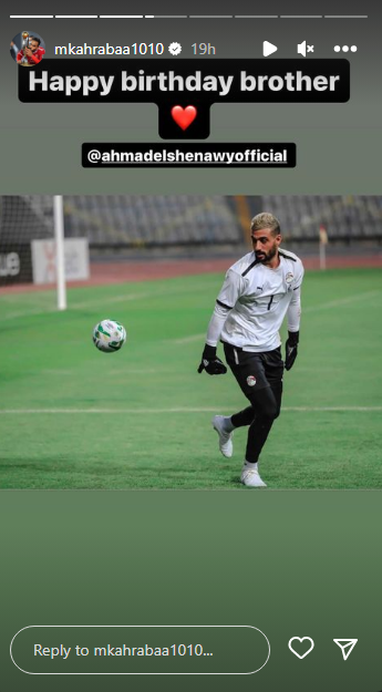 هنأ محمود عبد المنعم كهربا، لاعب النادي الأهلي، أحمد الشناوي، حارس مرمي نادي بيراميدز، بمناسبة عيد ميلاده، عبر حسابه الشخصي بموقع التواصل الاجتماعي “إنستجرام”.