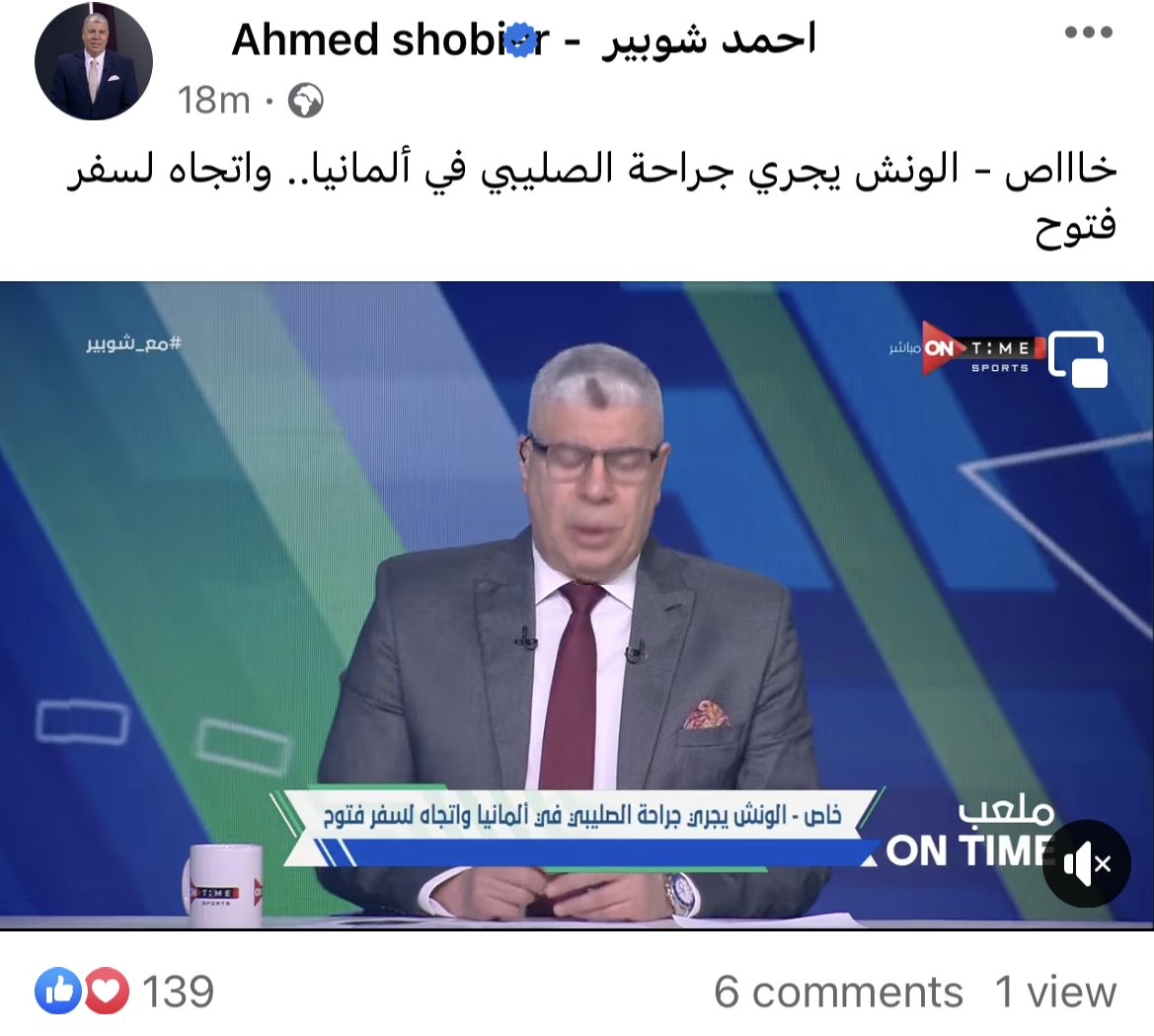 وكتب: “الونش يجري جراحة الصليبي في ألمانيا.. واتجاه لسفر فتوح”.