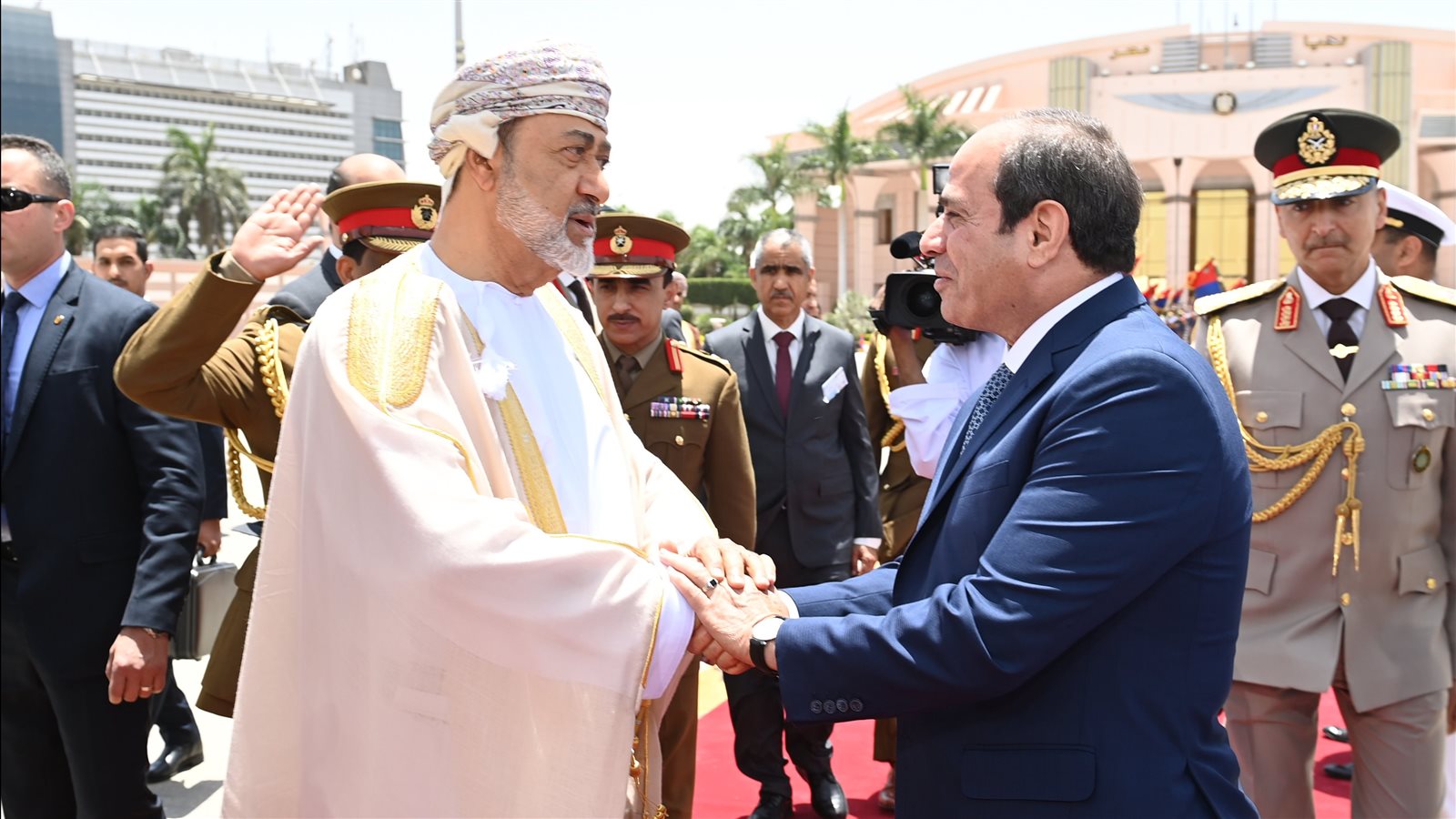 التقى الرئيس عبد الفتاح السيسي بالسلطان هيثم بن طارق سلطان عمان في قصر القبة صباح اليوم، في ثاني أيام زيارة جلالة السلطان لمصر.