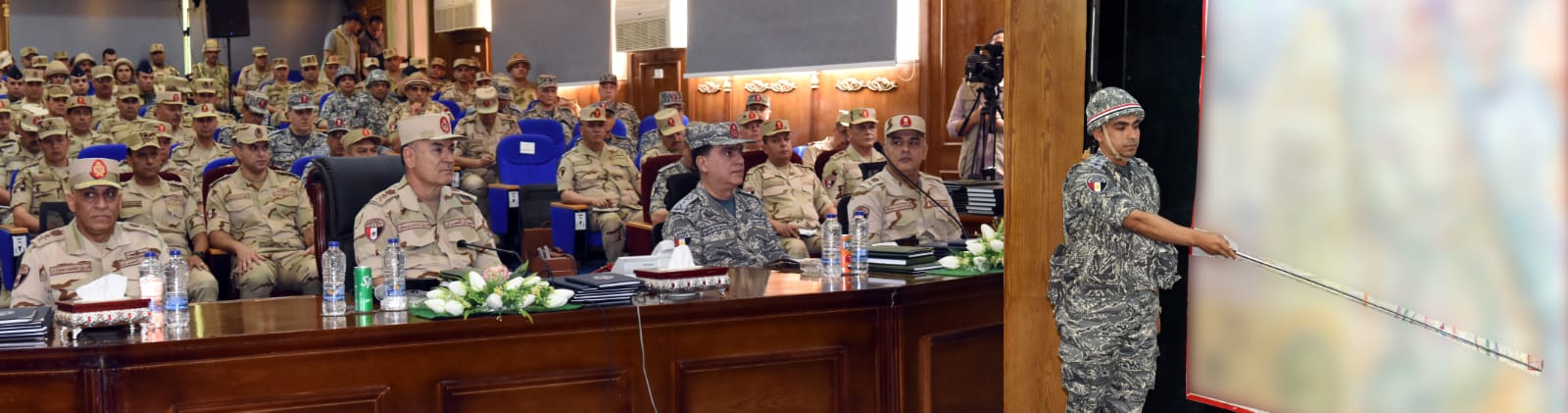 شهد الفريق أول محمد زكى القائد العام للقوات المسلحة وزير الدفاع والإنتاج الحربى تنفيذ المرحلة الرئيسية لمشروع مراكز القيادة التعبوي التكتيكي الذى تنفذه إحدى تشكيلات القوات الجوية بالتزامن مع تنفيذ مشروع مراكز القيادة التعبوي التكتيكي لإحدى تشكيلات قوات الدفاع الجوي عبر تقنية "الفيديو كونفرانس" والذى يستمر تنفيذهم لعدة أيام.