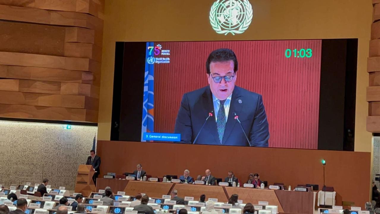 واختتم وزير الصحة والسكان، كلمته بالتأكيد على التزام مصر الكامل باستمرار العمل والتعاون بكل جهد مع كافة الدول الأعضاء والشركاء الدوليين في تحقيق الأهداف المنشودة للمنظمة، متوجها بالشكر إلى مسئولى منظمة الصحة العالمية وعلى رأسها الدكتور تادروس أدهانوم، داعياً الله أن تتحول التوصيات والمخرجات الصادرة عن هذه الدورة إلى واقعاً ملموساً يحقق الرفاه الصحي لكافة مواطنينا.