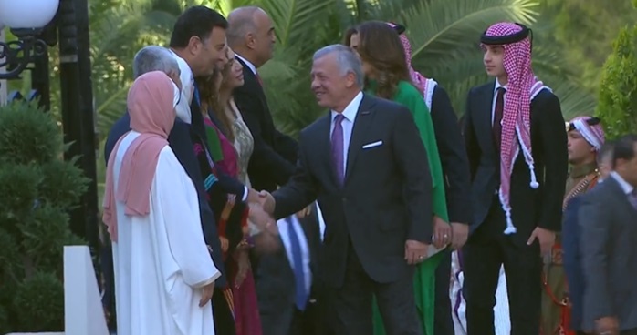 وبحسب هلا اخبار الأردنية؛ فقد أطلقت المدفعية 21 طلقة إيذانا بوصول الملك عبدالله الثاني، ترافقه جلالة الملكة رانيا العبدالله، إلى قصر رغدان العامر.