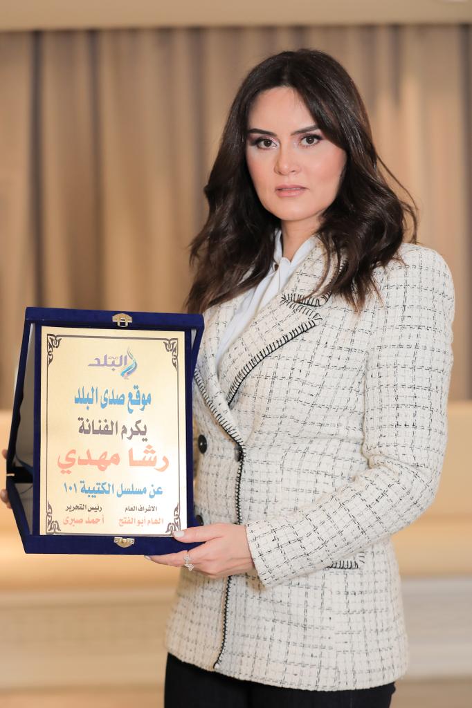 وكانت قد شاركت رشا مهدي في الماراثون الرمضاني بمسلسل الكتيبة 101.
