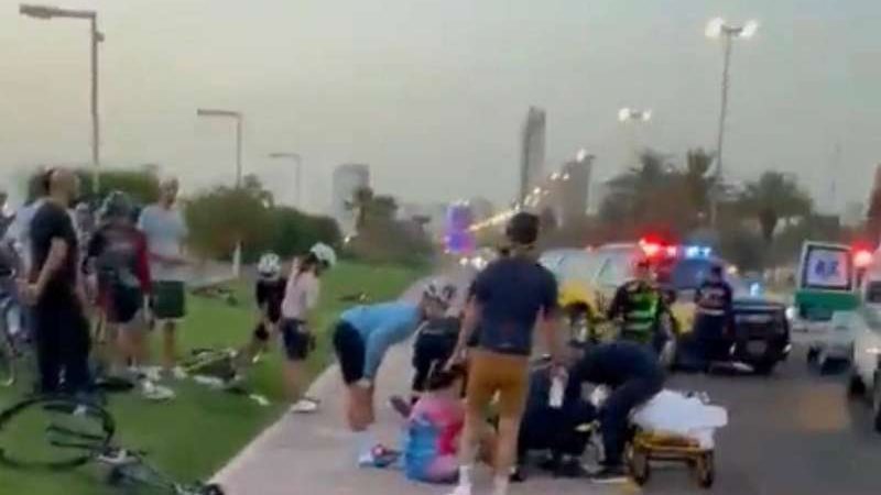 وكانت صحيفة الراي الكويتية قد أفادت بإصابة 15 شخصاً بكسور وجروح إثر حادث سير تعرضوا له فجر اليوم، أثناء ممارستهم هواية ركوب الدراجات الهوائية على شارع الخليج العربي.